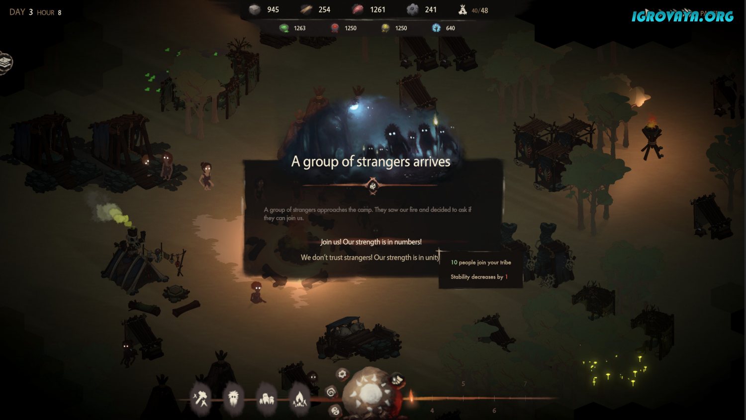 В ходе прохождения игры The Tribe Must Survive вы столкнетесь с огромным количеством различных обстоятельств, которые будут все время мешать вам развиваться. Более того, иной раз вам придется и защищаться, и сражаться, и принимать судьбоносные для большей части племени решения. При этом вы никак и ничем не будете ограничиваться. Вы сами решаете, что делать и как выживать, как управлять волей людей, и как добиться полноценного развития. Принимайте решения, выживайте, развивайте племя. У нас вы можете скачать The Tribe Must Survive торрент последнюю версию бесплатно на компьютер.