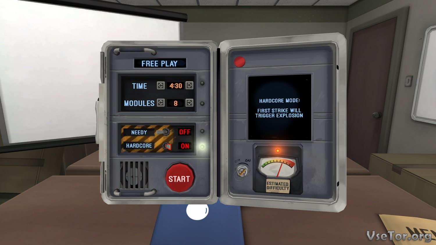 Что до бомбы, так она в Keep Talking and Nobody Explodes взрывается в тот момент, когда заканчивается время на таймере. При этом она может взорваться и значительно раньше. К примеру, к быстрому срабатыванию может привести ошибка сапера – каждая ошибка приводит к тому, что таймер попросту ускоряется. А еще саперу будут мешать сопутствующие проблемы: например, может внезапно выключиться свет, может зазвонить будильник, сработать сигнал тревоги или начаться землетрясение. У нас вы можете скачать Keep Talking and Nobody Explodes + Инструкция торрент последнюю версию бесплатно на компьютер.