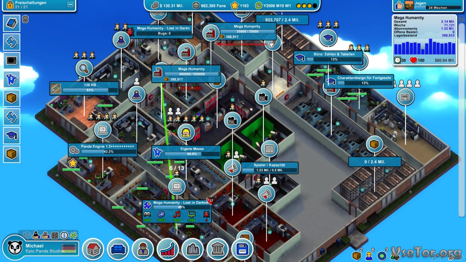 Конкуренция в Mad Games Tycoon тоже присутствует, и что не менее важно, конкурировать с другими разработчиками игр вам придется по всем фронтам. Но и решать проблемы конкуренции вы сможете так, как посчитаете нужным – можете выкупить компанию конкурента, или же заказать критику в его адрес, заключить с его издателями контракты или напакости как-то еще. Вариантов много, и вам решать, как поддерживать свой бизнес на плаву… У нас вы можете скачать Mad Games Tycoon торрент последнюю версию бесплатно на компьютер.