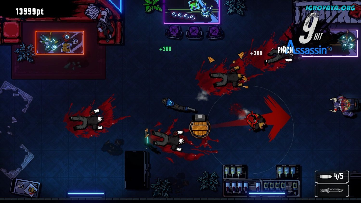Ворвитесь в заведение к врагам и устройте кровавое месиво, приправленное неоновыми цветами и динамичной музыкой. Не щадите никого, ведь никто не смилуется над вами. Используйте в бою собственное оружие или то, что найдете на локации. Помимо этого у главного героя вместо одной руки установлен бионический протез, трансформирующийся в клинок. В игре Kusan: City of Wolves доступна прокачка огнестрела, ножей, а также протеза и боевых навыков. Набирайте очки, чтобы впоследствии тратить их на покупку нового арсенала и прокачку уже имеющегося. Чем быстрее вы пройдете уровень - тем больше будет финальная награда. Анализируйте ситуацию и быстро меняйте тактику в зависимости от складывающейся ситуации. У вас не останется выбора, кроме как стать сильнее и быстрее, ведь ты - непобедимый зверь города.