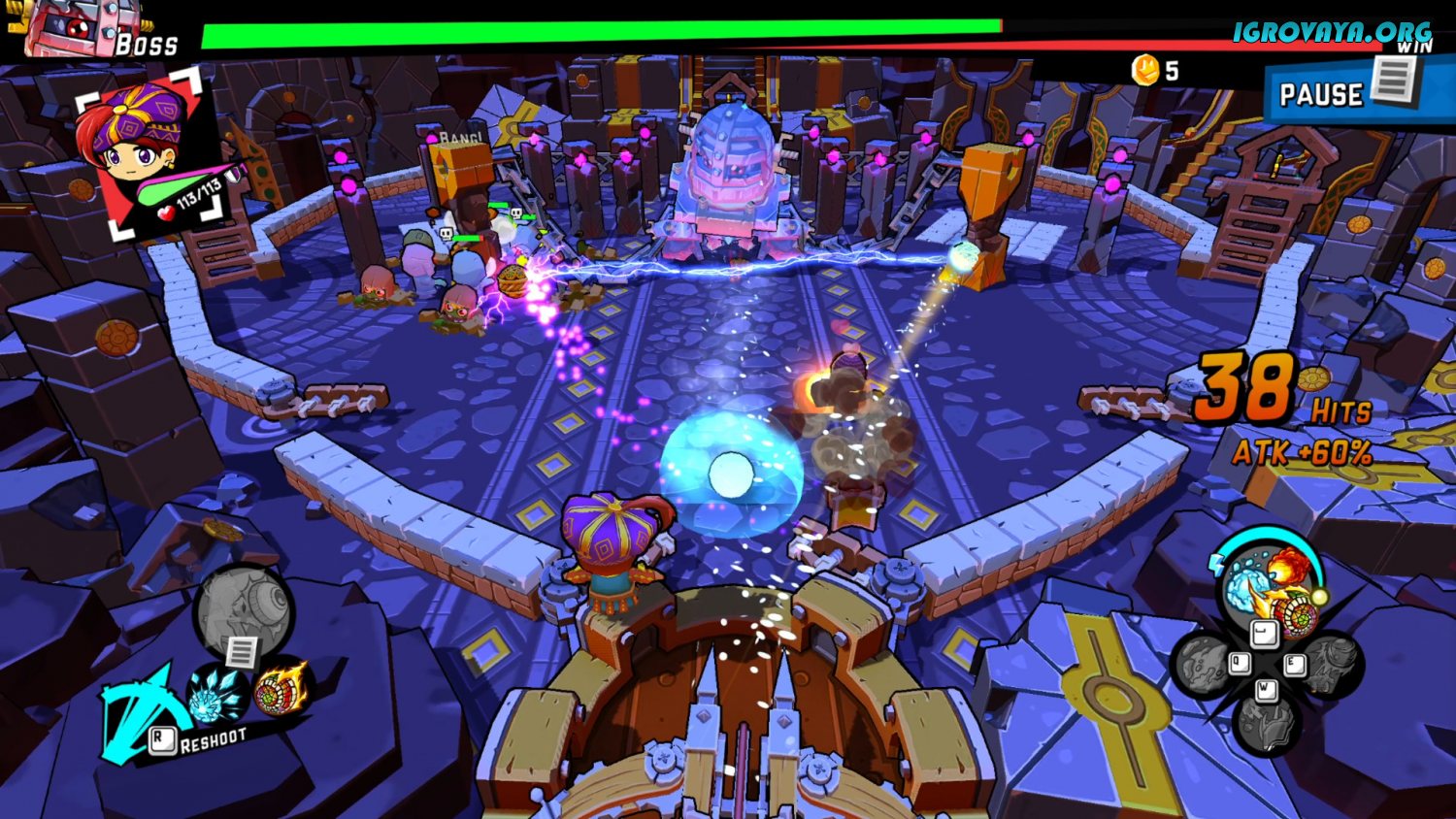 Геймплей не особо отличается от классического пинбола, единственное, что вместо шарика стоит выбрать одного из 10 героев с уникальными боевыми способностями, которые в дальнейшем улучшаются при помощи собранных в бою золотых монет. Для усиления персонажей используйте дополнительные предметы из инвентаря: их можно найти при путешествии по миру или приобрести. Они разделяются по уровню редкости, где легендарные веди имеют больше преимуществ и крайне ценятся в бою. Экспериментируйте и создавайте эффективные связки, особенно полезные при битвах с боссами. Используйте с умом и предметы окружения на каждой из локаций: будь то крутящийся топор для увеличения урона или ящики для сдерживания и замедления врага.