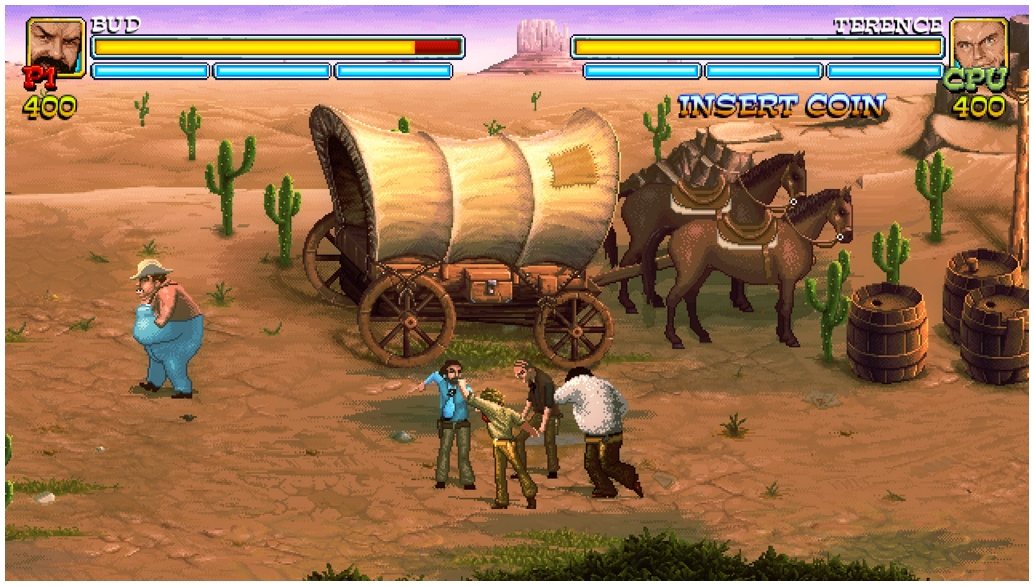 Bud Spencer & Terence Hill - Slaps And Beans — первая официальная игра о культовых персонажах итальянских экшен комедий, выполненная в стилистике олдскульных beat’em up. Разработчики объединили все фильмы с их участием в один сюжет, так что фанаты смогут увидеть знакомые места, а те, кто слышит о героях впервые - весело провести время.