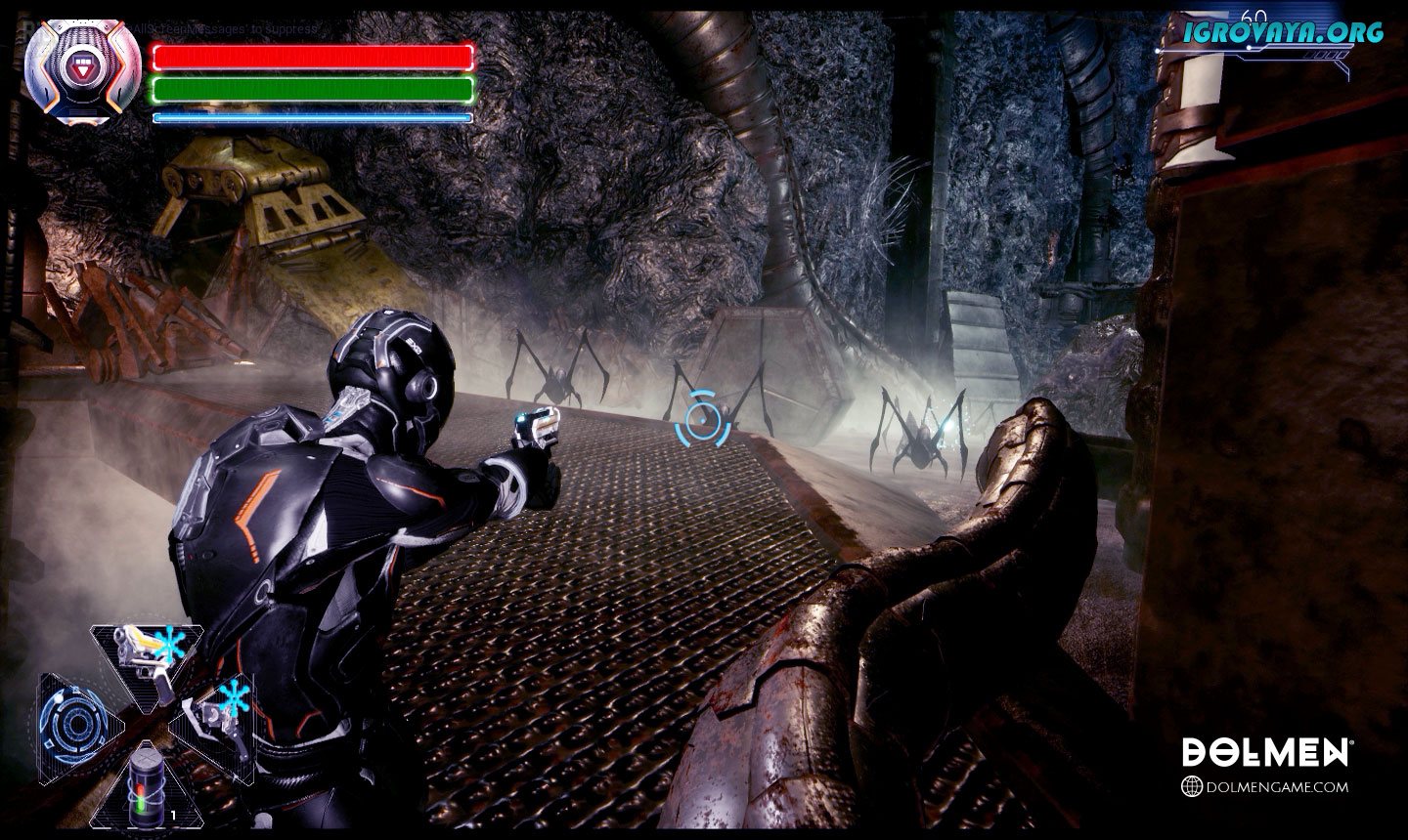 Всего игроку доступно три вида оружия и щит для блокировки ударов. Вы можете скачать Dolmen торрент и попробовать каждое из них. Основное - меч с двумя атаками: обычной и усиленной, которая наносится в прыжке. Пистолет больше подойдет для выманивания врагов, чем для ведения боя. Его боезапас ограничен энергетической полоской, о которой было сказано выше. Также, по мере прохождения, вы найдете или приобретайте в автомате гранаты. Используйте преимущества окружения в бою: столкните врага с высоты или метким выстрелом активируйте ядовитые споры, растущие на полотке, и скиньте их на голову противника.