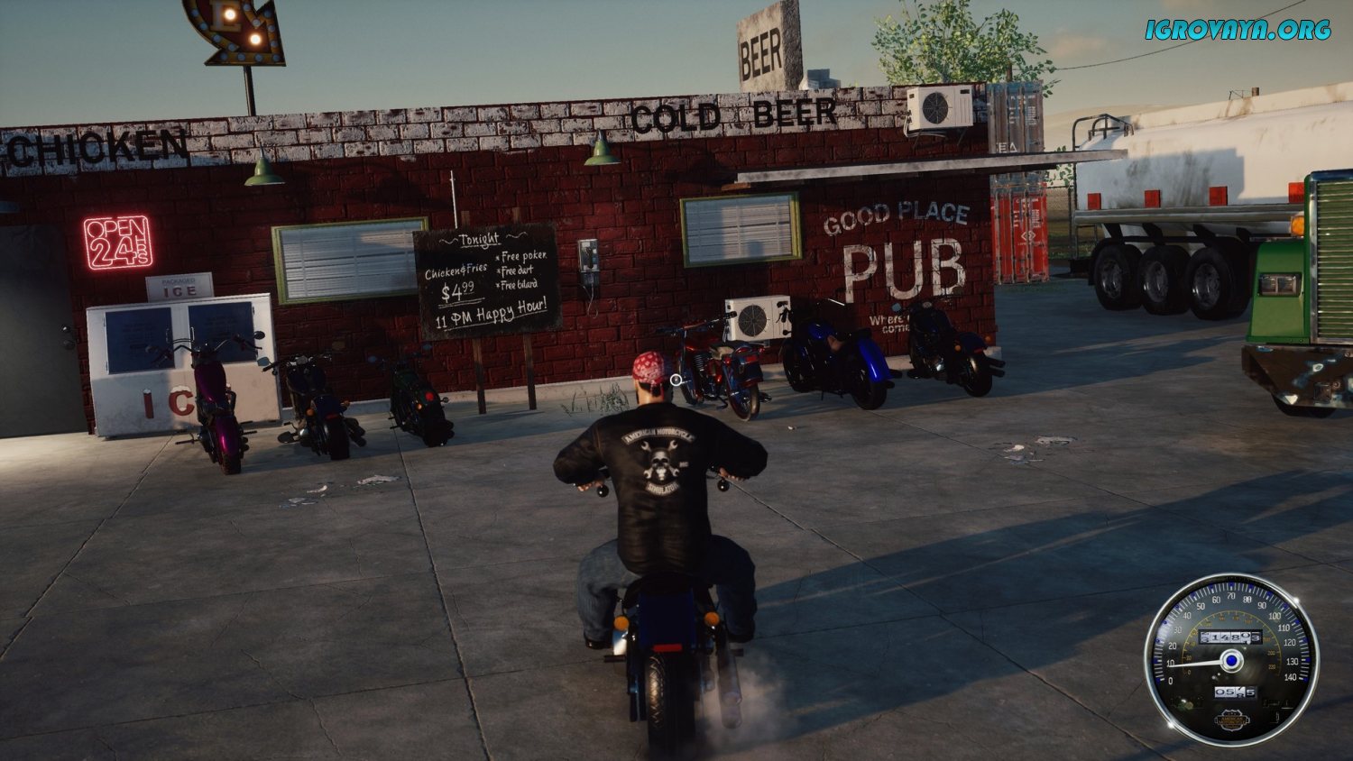 Не стоит недооценивать важность денег. Следите, чтобы в кармане всегда был доллар-другой на гамбургер в придорожной забегаловке и номер в мотеле, где придется ночевать. Да и мотоцикл питается далеко не солнцев и свежем воздухом, поэтому не забывайте заезжать на заправку. Наведайтесь в бар и сыграйте с азартными посетителями в дартс, бильярд или покер на деньги. Не переборщите с алкоголем, а то любые игры станут в разы сложнее, а шанс попасть в передрягу вырастет в двойне. Не лезьте на рожон к сомнительным личностям и старайтесь просто хорошо проводить время. Насладитесь запоминающимся путешествием через горы, степи, леса и поля и доберитесь до своей конечной точки назначения. У нас вы можете скачать American Motorcycle Simulator торрент последнюю версию бесплатно на компьютер.