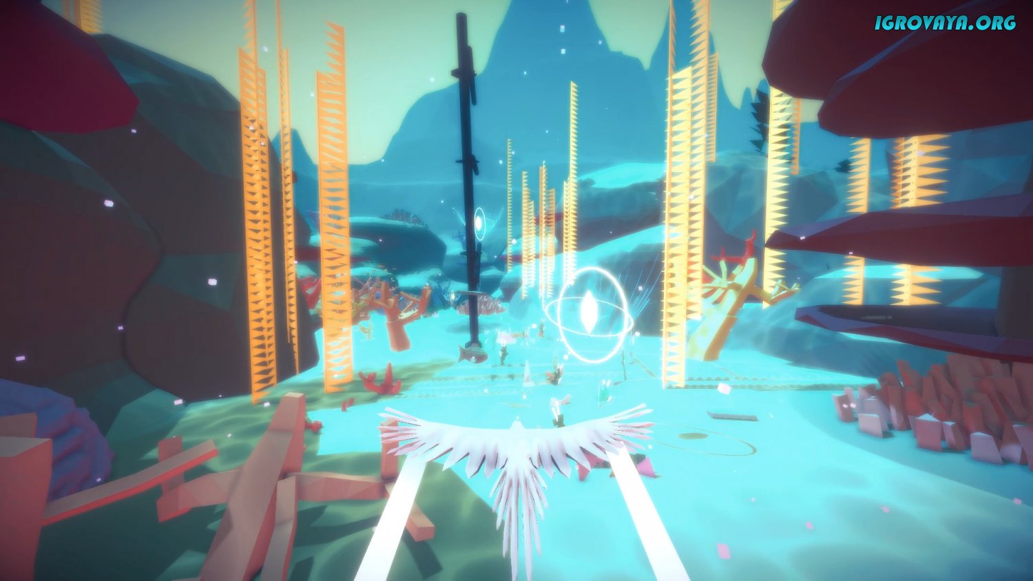 Главным персонажем по-прежнему остается яркая птица. Набирайте высоту, опускайтесь ниже, выполняйте незначительные трюки и получайте наслаждение от процесса. Золотые кристаллы будут указывать вам направление и только вам решать следовать за ними или изучать локацию самостоятельно.