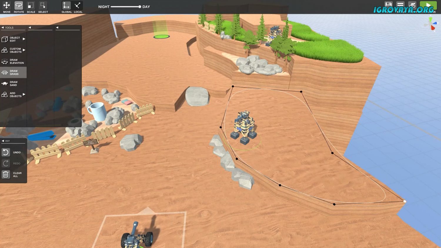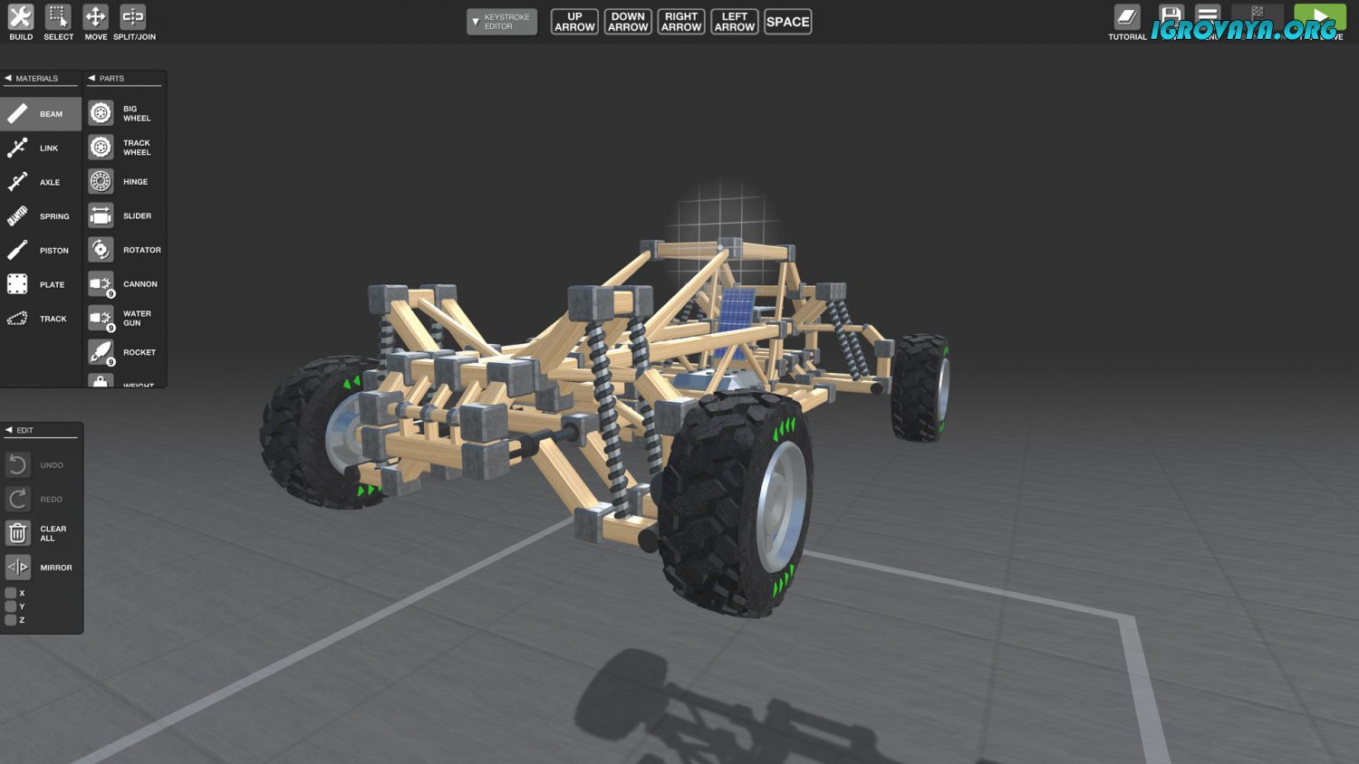 Разработчики постарались и создали поистине уникальный режим строительства, который понравится даже самым искушенным геймерам. Вы буквально с нуля создадите собственное транспортное средство. Разберитесь как устроена рама и рулевая система, а после усложняйте и добавляйте подвижные элементы и электромоторы. Вы можете скачать Rover Builder и в режиме реального времени добавлять или убирать части автомобиля. Перед отправкой техники на карту убедитесь, что машина достаточно крепкая и не развалится от столкновения с первой же кочкой. Если во время тестирования что-то пошло не так, то вы в любой момент можете вернуться в гараж и добавить нехватающих конструкции элементов.