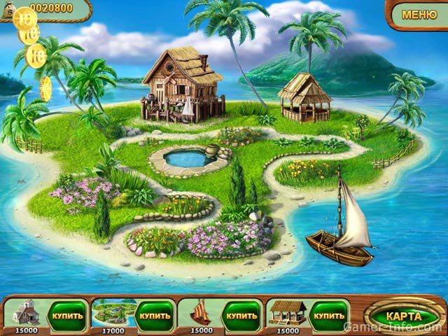Сбор золотых монет - одна из неотъемлемых частей геймплея. Они находятся в сундуках, а также указывают игроку путь продвижения по локации, словно тропинка. На заработанные деньги вы сможете покупать улучшения для своего острова: постройте красивый дом, приобретите корабль и украсьте участок. От этого напрямую зависит сможете ли вы пройти на следующую область или нет: в противном случае придется повторно перепроходить уровни.
