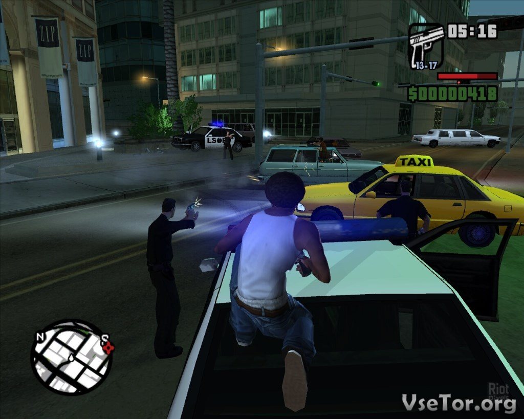 В остальном же игра сохраняет традиции, которых придерживалась серия. Вас ждет широчайший ассортимент автомобилей, и каждый вы можете угнать прямо на дороге, остановив водителя и выкинув его из машины. В самом начале по улицам разъезжают лишь бюджетные тачки, но по мере прохождения игры мир расширяется и на улицах появляются крутые спортивные кары, редкие тачки и не только. То же самое касается и оружие – через какое-то время в вашем распоряжении будут дробовики, снайперские винтовки, гранатометы, пистолеты и многое другое. У нас вы можете скачать GTA San Andreas торрент последнюю версию бесплатно на компьютер.