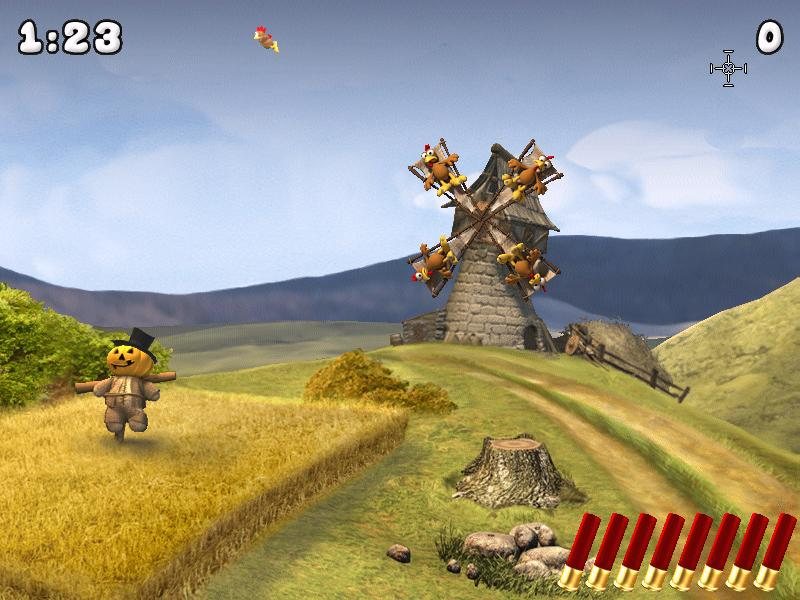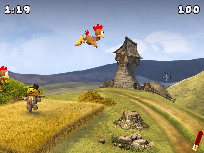 Кроме того, теперь игра воспроизводится на современных мониторах с большим разрешением. Да и некоторые локации были сильно изменены, доработаны, подправлены. Но зато в целом игра осталась такою же, какою и была. Вас снова ждет бесконечная стрельба по курам, что дразнят, летая в небе и прыгая по земле, восемь патронов в обойме, вечно кончающееся время, и рекорды, лидером которых вы можете стать. Хватайте ружья, стреляйте по курам, цельтесь как можно лучше, чтоб не тратить лишних патронов, устанавливайте рекорды и попадайте в таблицу лидеров, и просто веселитесь…