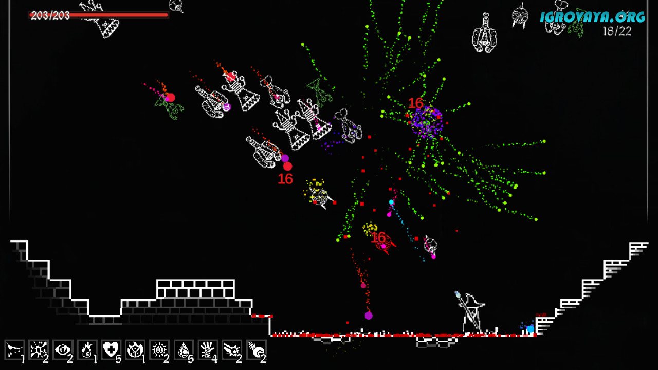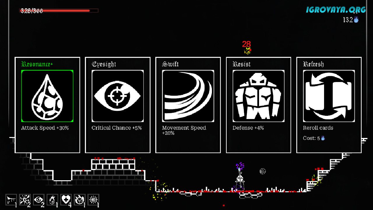 После уничтожения всех врагов вам предложат выбрать улучшение для своего мага. Разработчики добавили более 40 видов карт для прокачки главного героя, что позволит собрать собственную колоду и сделать персонажа непобедимым. Добавьте здоровья, защиты и урона своему оружию, закупитесь взрывоопасными заклинаниями и не дайте сломить вас.