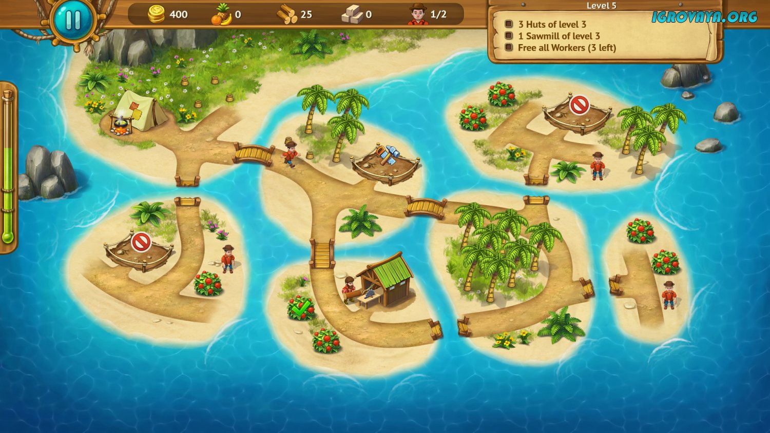 Уровень представляет собой игровое поле с заранее выделенными секциями под постройки. Их в игре достаточно много и новые виды открываются с повышением опыта. Вы также сможете улучшать здания для повышения дохода или, если дело касается грядок, урожая. Будут встречаться и элементы головоломки, например, у вас есть разрушенный мост, а для его починки необходима лесопилка для которого, в свою очередь, нужно не только место постройки, но и ресурсы. Думайте наперед и создайте из необитаемого острова настоящий курортный рай. У нас вы можете скачать Islandville: A New Home торрент последнюю версию бесплатно на компьютер.