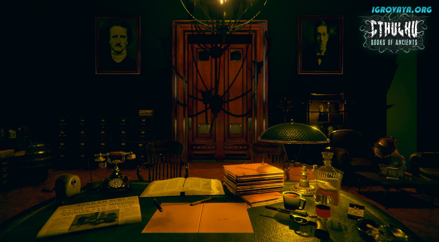 Какой же крупный проект без экспериментальной механики? События игры происходят в рамках одного здания и только с одним персонажем, главным героем. Такой сеттинг сам по себе наводит жуткую атмосферу, а напряжения добавляет подобранные саундтреки и звуковые эффекты. О второстепенных персонажах и предысторию игрок узнает через вырезки газеты “Иннсмутский вестник”, а также через оставленные записки, разбросанные в разных частях локации. У нас вы можете скачать Cthulhu: Books of Ancients торрент последнюю версию бесплатно на компьютер.