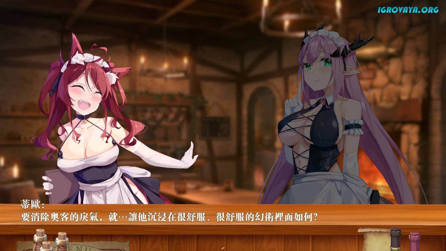 Игра приятно удивит проработанным и глубоким сюжетом, который был явно написан не для галочки. Выслушивайте историю каждого гостя и погрузитесь в фэнтезийный мир. Игрок побывает на 30 локациях с разными персонажами. Налаживайте с ними связь и утолите сексуальные потребности протагониста, тем более, что красотки здесь на любой вкус: привлекательные девушки, развратные демонессы, строгие эльфийки, похотливые фурри и это только небольшой список присутствующих существ.