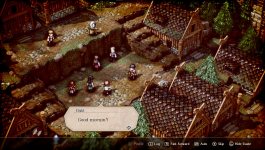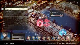 Боевая система представляет собой последовательное перемещение доступных персонажей по сетчатому полю боя. Одержите победу и уничтожьте всех врагов на карте при помощи уникального оружия, магических приемов и специальных навыков. Расположите отряд по разные стороны от врагов для нанесения двойного урона, а также используйте элементы окружения, сжигая сухую траву, чтобы не дать противнику пройти, а заклинание шторма на стоящего недалеко от скалы соперника сбросит его. У нас вы можете скачать Triangle Strategy торрент последнюю версию бесплатно на компьютер.