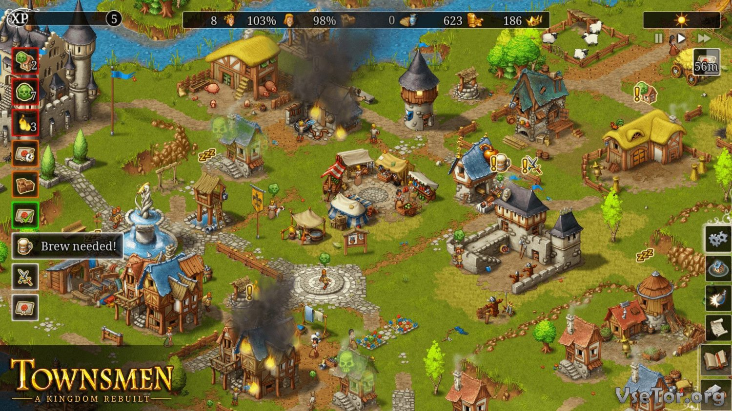 Ну а помимо всего прочего не забывайте еще и о врагах вашего королевства. Вам то и дело будут надоедать бандиты, вражеские войска, болезни, чума, голод, природные катаклизмы и многое другое. Будьте готовы ко всему без исключения и станьте настоящим королем, готовым на все ради счастья своих подданных. У нас вы можете скачать Townsmen - A Kingdom Rebuilt торрент последнюю версию бесплатно на компьютер.