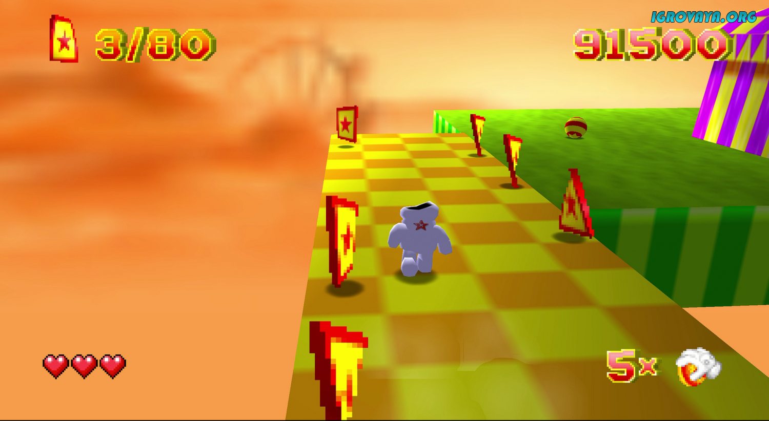 Гариба - это красные карты с золотой звездой, разбросанных на локации и выпадающих из врагов. Всего их ограниченное количество, но собрав их все открывается доступ к бонусным этапами, расположенным в каждом мире. Всего их шесть и отличаются они дизайном местности и попадающимися на пути противниками. Пройдите все 30 миссий, сразитесь с сильными боссами и расколдуйте горе мага. У нас вы можете скачать Glover торрент последнюю версию бесплатно на компьютер.