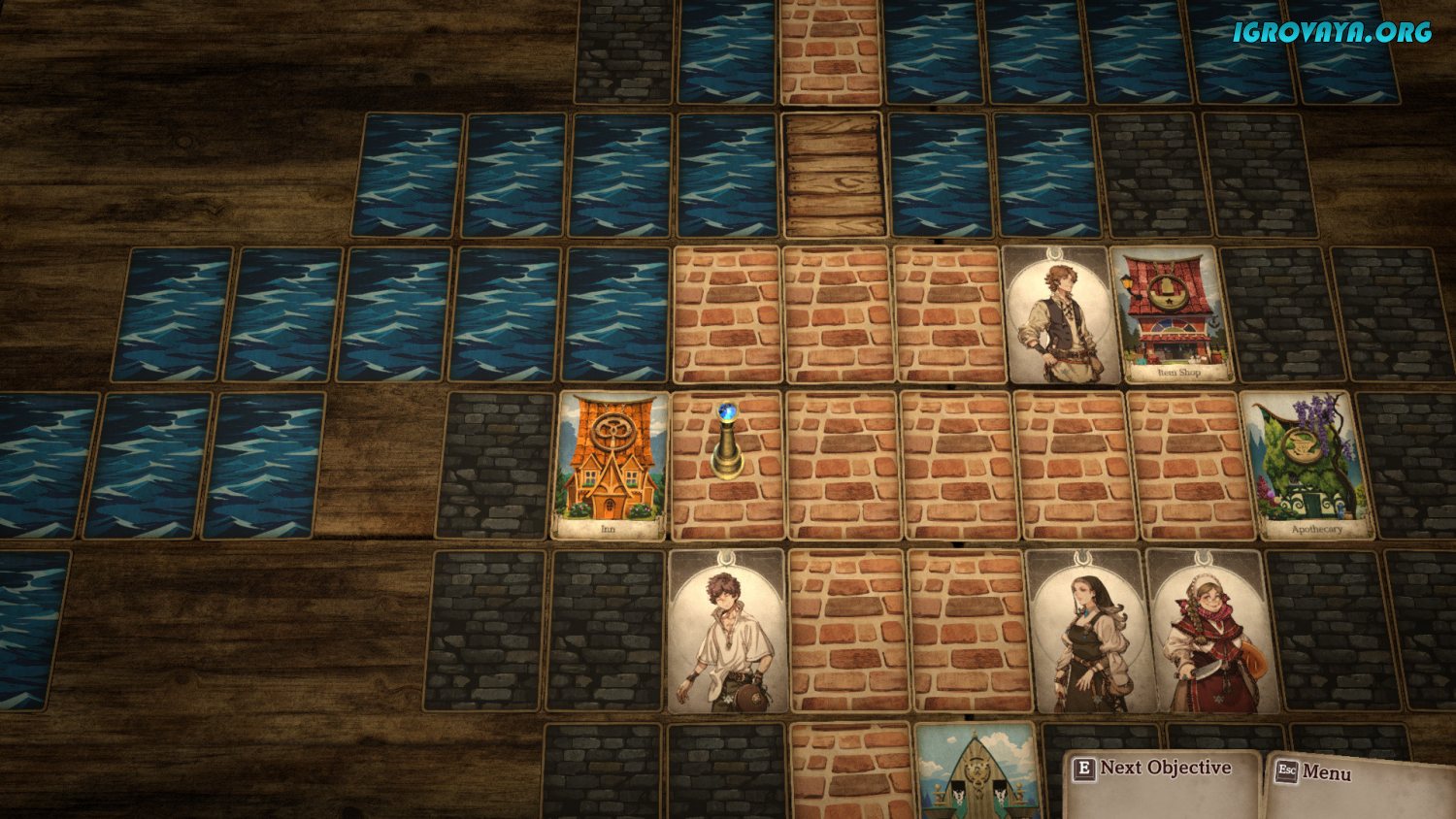Игровая механика интуитивно понятна и очень дружелюбна по отношению к новичкам, которые ранее не сталкивались с подобным жанром. Вместе с этим внутриигровой туторил подробно рассказывает о всех особенностях: начиная о передвижении вне боя и заканчивая самой боевой системой. Она происходит по типу карточного сражения, где у вас находится карта персонажа и его атак, а на столе лежит карта противника, где отображено его здоровье, наносимый урон и статус защиты. Выбирайте какой прием хотите использовать и применяйте его, тратя при этом карту и так до победного конца.