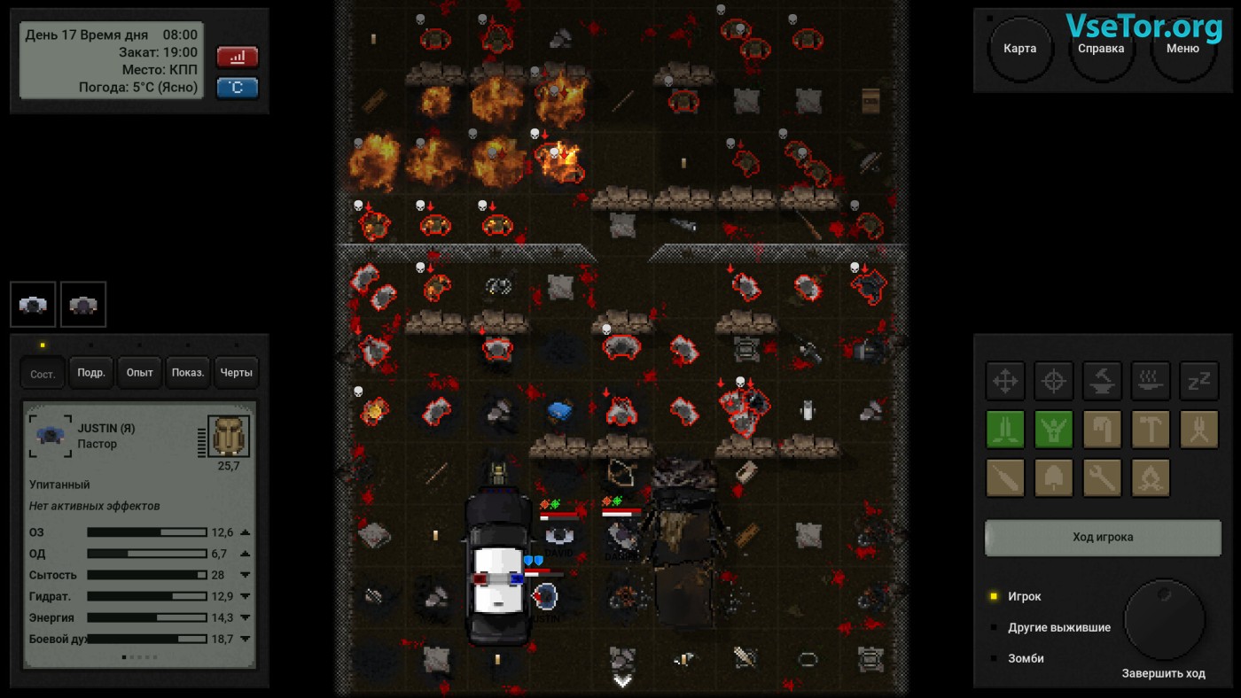 Город молчит, только ветер гоняет мусор по пустым улицам – в Terminus: Zombie Survivors вы один из немногих, кто выжил среди зомби. Это пошаговая игра, где каждый ход решает, жить вам или нет. Начинаете с выбора героя – солдат, фермер или, может, пожарный – у каждого свои сильные стороны. Ваша цель – добраться до Терминуса, безопасного места на севере. Карта каждый раз новая: дома, магазины, улицы – всё случайное, и везде можно найти еду, оружие или инструменты. Мир пиксельный, но живой – снег падает, солнце светит через окна, а зомби шатаются в тенях.
