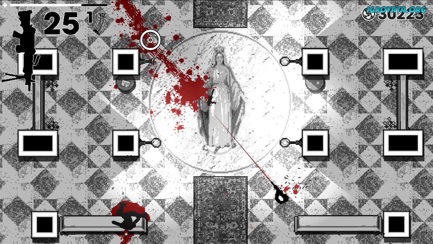 Проект по геймплею напоминает уже известную игру Hotline Miami. Игрок загружается на локации с несколькими комнатами, где обитают враги. Задача заключается в преодолении уровня с уничтожением всех соперников. Используйте оружие ближнего боя или огнестрел и заранее планируйте атаки, ведь на шум прибежит подмога. Следите за количеством патронов и при необходимости заменяйте его на пушки, выпавшие из убитых бандитов. Отличительной механикой стало наличие уворотов и замедление времени, которое заметно облегчает прохождение особенно при сражениях сразу с несколькими противниками.