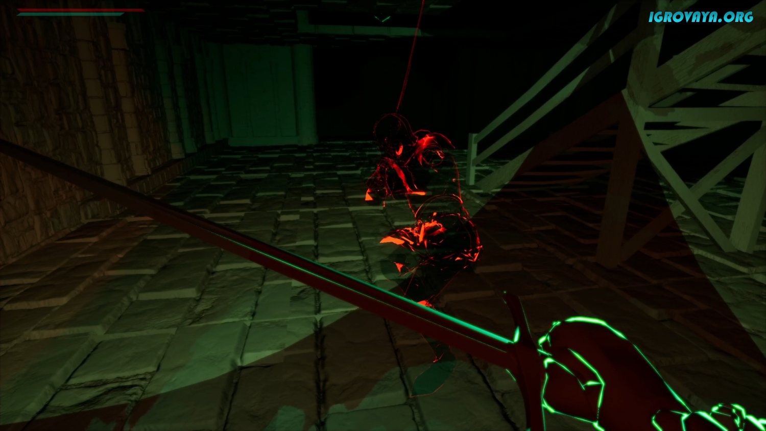 Основной игровой механикой в EchoBlade выступает то, что персонаж ослеплен и ориентируется исключительно на внешний шум, словно летучая мышь. Не переживайте, вы не будете двигаться наугад наблюдая за черным экраном. Графическая составляющая интересно выполнена, где опасные участки и противники изображены красным свечением. Ориентируйтесь на очертания помещения и передвигайтесь вдоль стен, стараясь не угодить в ловушку или не натолкнуться на решетку с шипами.