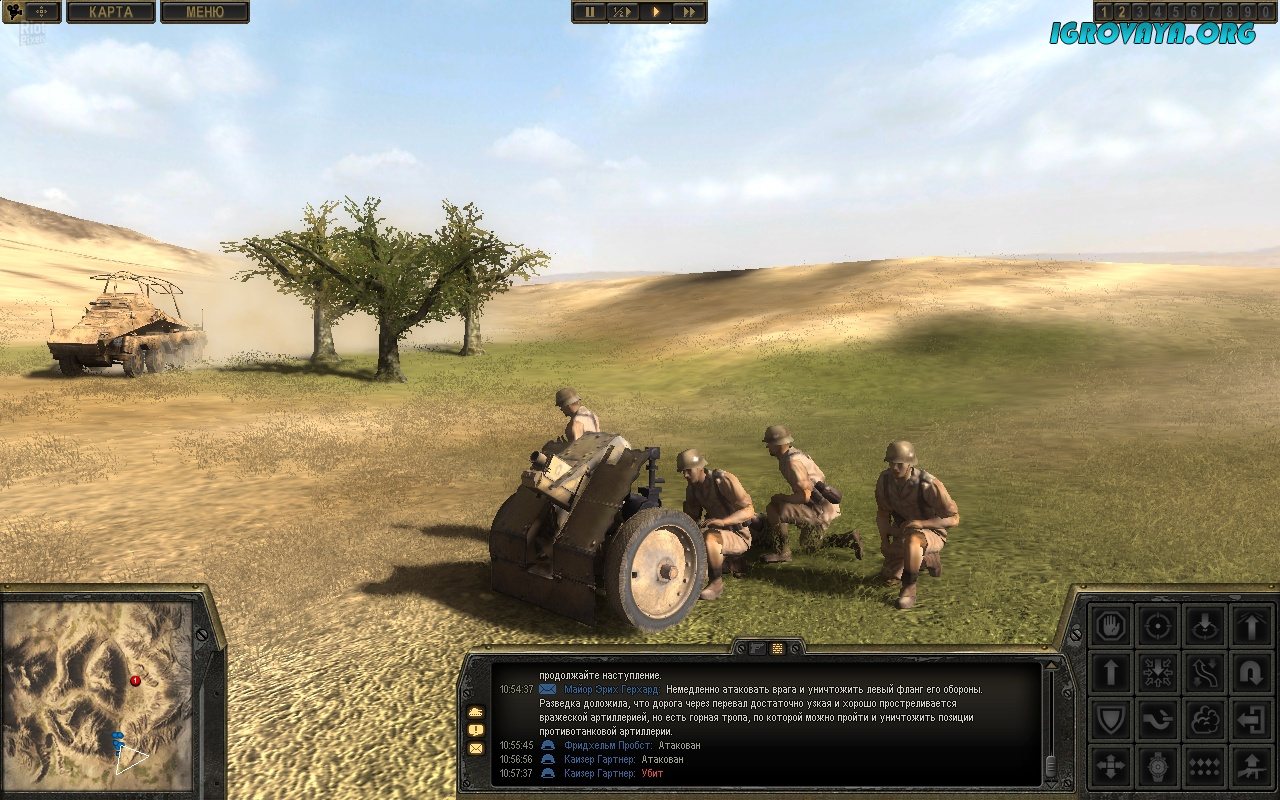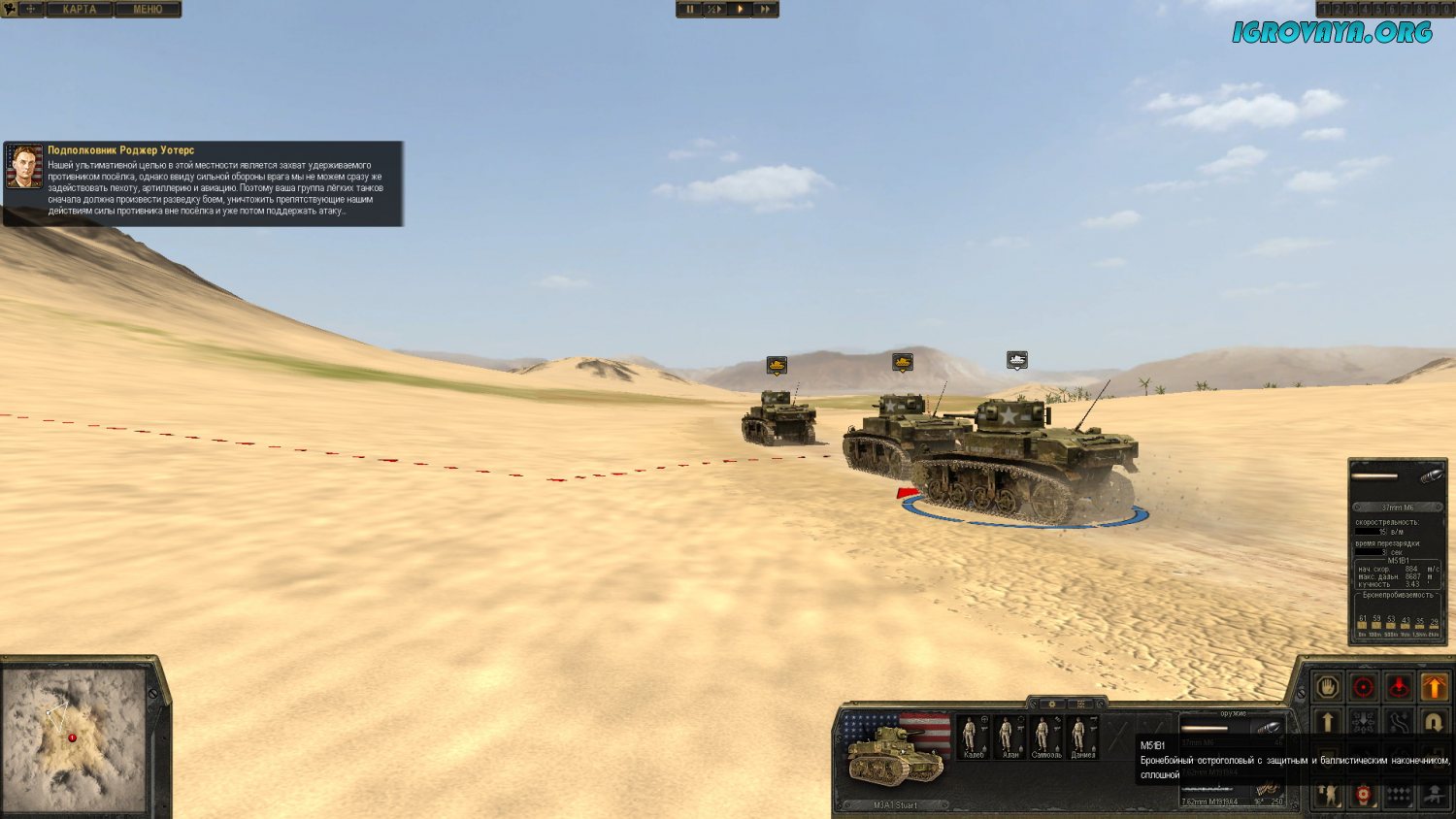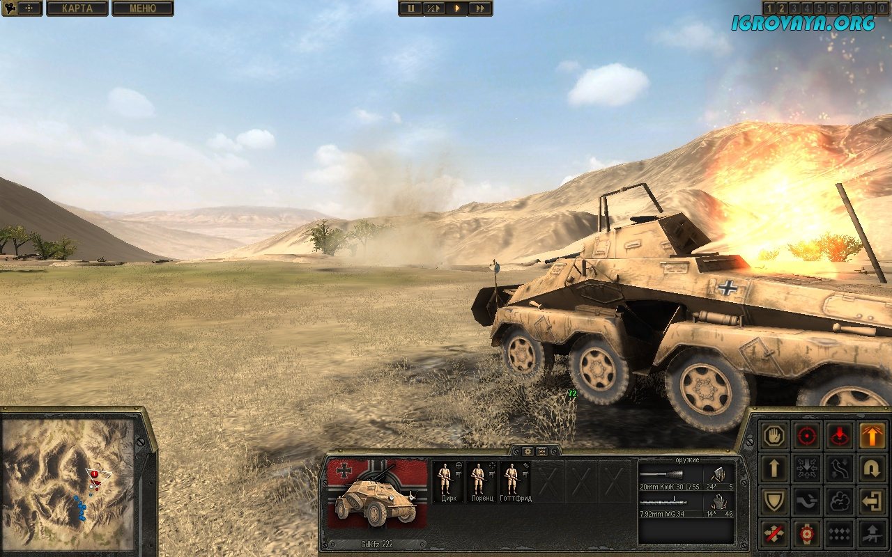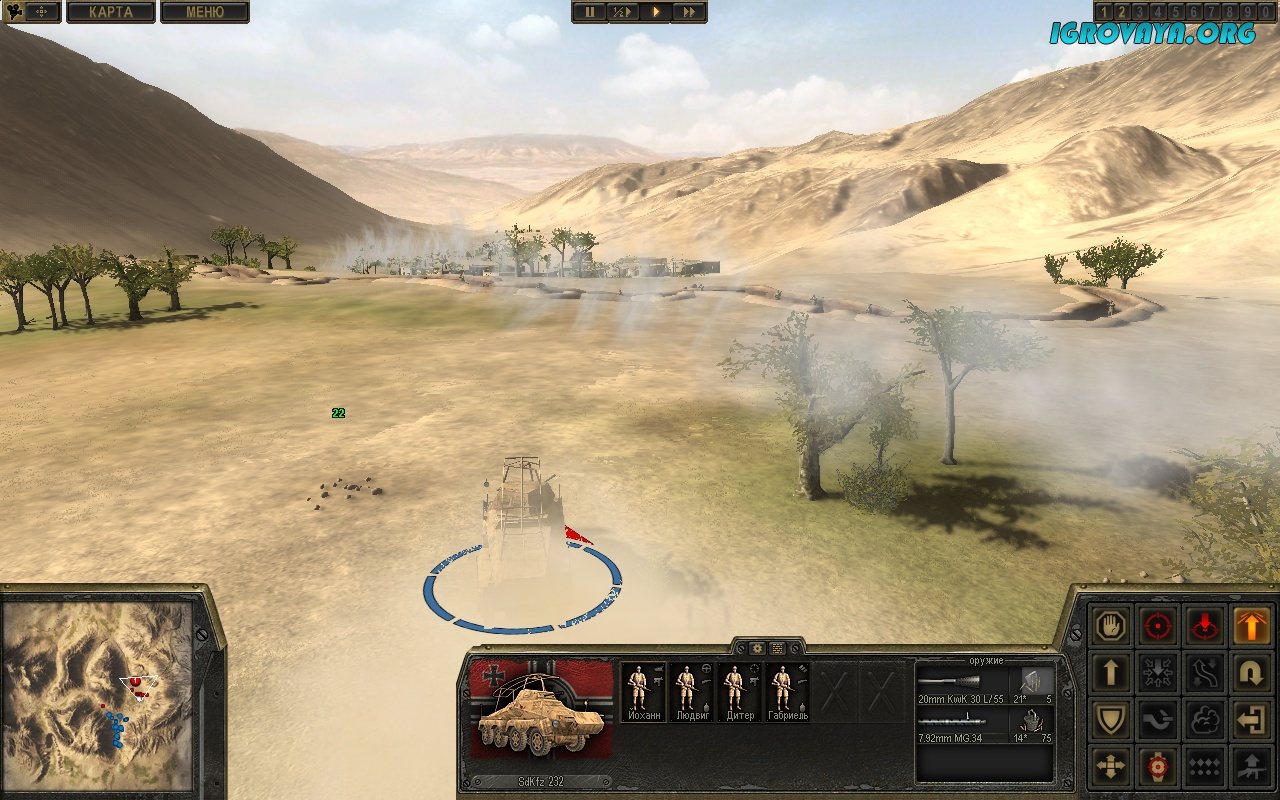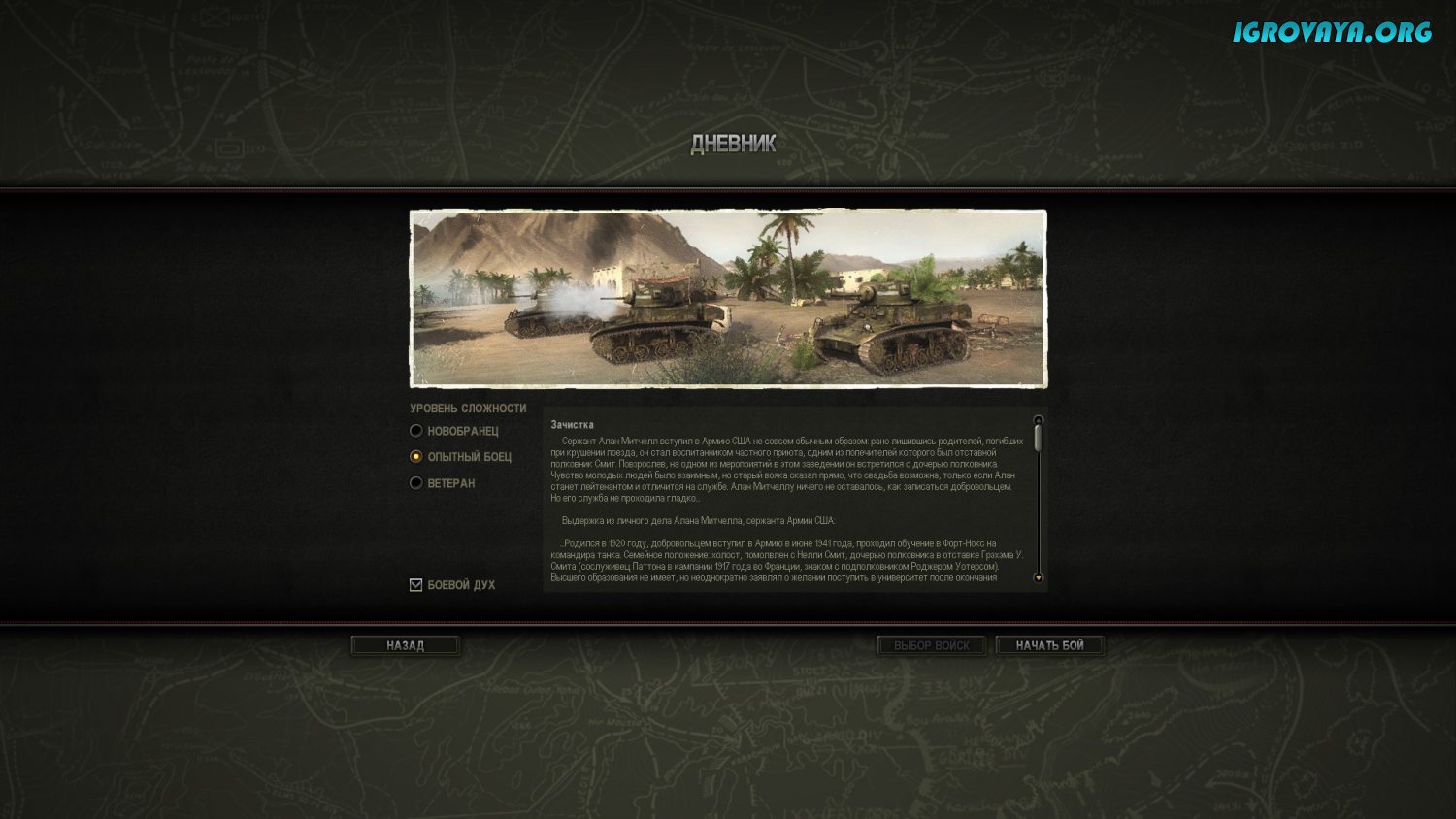 В Theatre of War 2: Africa 1943 от команды российских разработчиков игроки пройдут 15 увлекательных миссий разной сложности. Эта часть отличилась от других игр серии тем, что в ней присутствуют задания на захват зданий и в них же могут вестись бои. Геймплей сводится к управлению командой, где перед боем вы выбираете размещение своих боевых машин и солдат. После начинается само сражение, где вы по прежнему отдаете указания по перемещению, управляя сразу несколькими единицами команды. Вы также имеете возможность переключаться на конкретный танк или военного, чтобы от его лица наблюдать за происходящими событиями и совершать ряд действий. Не забывайте о том, что видимость зависит от нескольких факторов: угла обзора, дымовой завесы и установленных датчиков на технике.