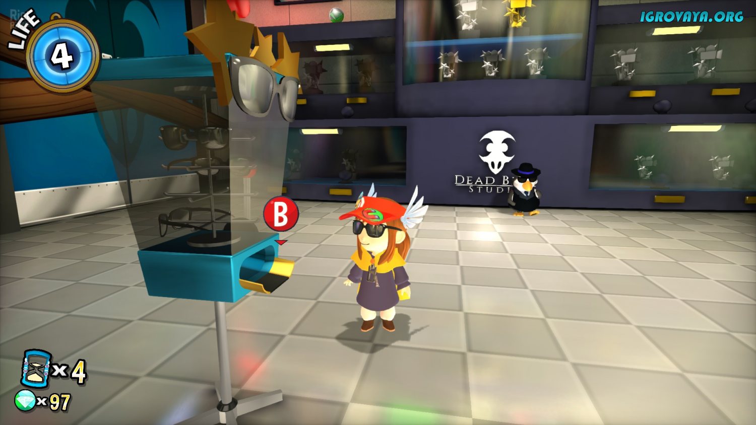 В целом игру можно поделить на несколько этапов. Первый этап, это исследование окружающего мира, города Мафии, в котором каждый персонаж может дать подсказку, рассказать о чем-то и просто помочь. Второй этап – изучение различных навыков, прокачка и испытания, зачастую выступающие в виде физических головоломок. Ну и конечно же в A Hat in Time не обошлось без сражений – вам придется сражаться с охранниками Мафии, с боссами, и другими многочисленными врагами.