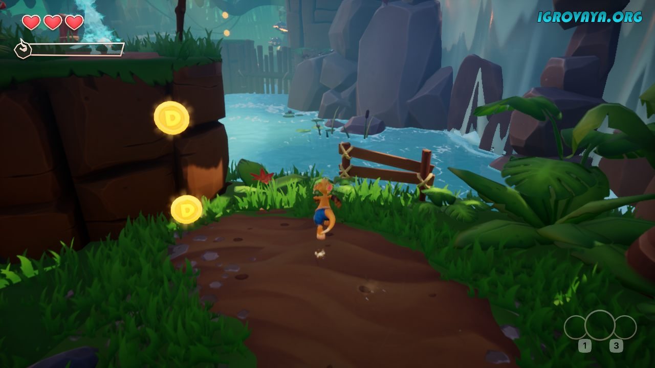Используйте полученные боевые умения, чтобы победить встречающихся врагов. На вашем пути попадутся как безобидные существа, так и опасные боссы для победы над которыми придется постараться. Используйте улучшения для боксерских перчаток, чтобы усиливать удары и наносить стихийный урон. Для этого придется поднакопить золотых монет, которые разбросаны по всей области. Загляните в труднодоступные места и соберите все буквы имени героя, чтобы получить дополнительное вознаграждение. У нас вы можете скачать Kao the Kangaroo торрент последнюю версию бесплатно на компьютер.