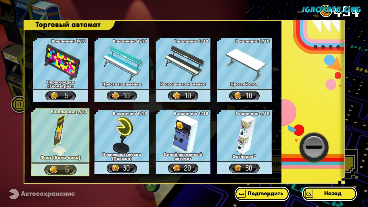 Интересной концепцией, которая напрямую перекликается со сборником 2014 года, является то, что игрок находится в игровом зале с аркадными автоматами, перемещаясь между ними для игры в тот или иной проект. К сожалению, в самом начале игроку открыты лишь первые части серии, а остальные открываются за монеты. Выполняйте предложенные задания и зарабатывайте их, а когда будут разблокированы все игры, то можете приступить к декорированию зала. Выберите обои и пол, а также украшения и различную мебель из предложенного списка. У нас вы можете скачать Pac-Man Museum+ торрент последнюю версию бесплатно на компьютер.