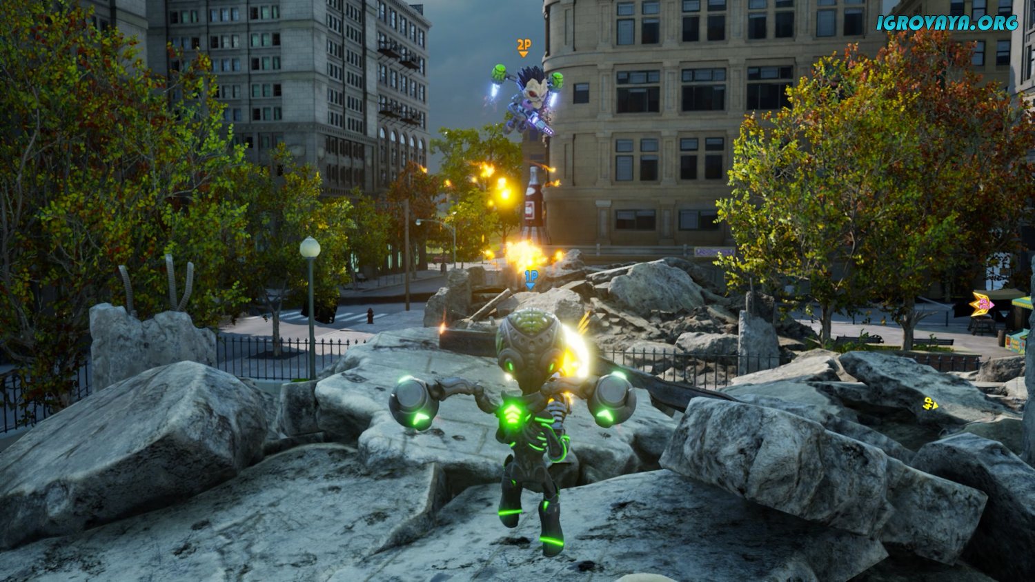 В вашем распоряжении будет несколько десятков орудий, позволяющих совершать безбашенные действия. Начиная от анальных зондов и заканчивая музыкальными пушками, которые заставят пуститься в пляс любого, кто услышит эти прекрасные звуки. Используйте летающие тарелки для уничтожения объектов и достопримечательностей, а также реактивные ранцы, чтобы попасть в труднодоступные области. Ваш арсенал безграничен. У нас вы можете скачать Destroy All Humans! Clone Carnage торрент последнюю версию бесплатно на компьютер.